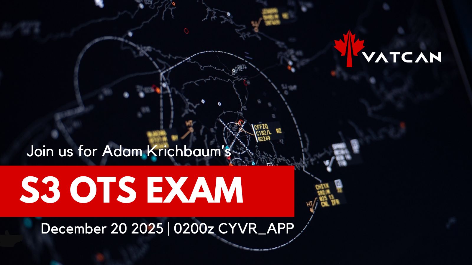 It's time for another OTS exam in the Vancouver FIR! Come out and fly to or from Vancouver Dec 20th 0200z as Adam takes on his S3 OTS on CYVR_APP.